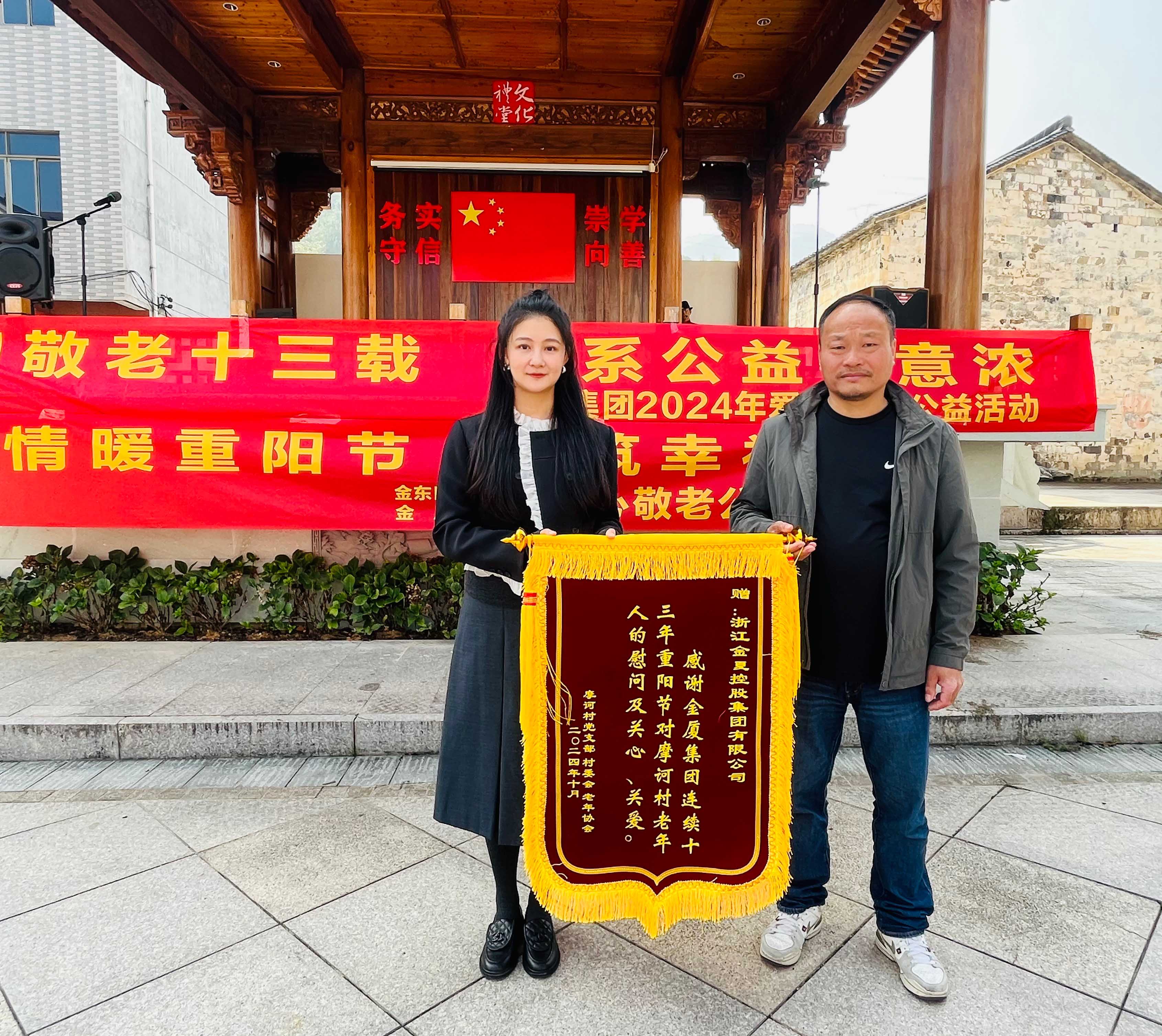 在2024年重陽節(jié)即將來臨之際,為進一步弘揚中華民族尊老敬老的傳統(tǒng)美德,展現(xiàn)企業(yè)的社會責任感, 10月10日上午,金華市政協(xié)委員、金廈集團董事長蔣晨虹率集團高管及各條線負責人一行再次前往金東區(qū)嶺下鎮(zhèn)摩訶村,開展“情暖重陽節(jié),共筑幸福夢”重陽慰問活動,為村里老年人和困難家庭送上慰問金、慰問品,并通過豐富多彩的活動為大家送上節(jié)日的美好祝福。這也是金廈集團連續(xù)第13年開展重陽節(jié)助老公益活動。