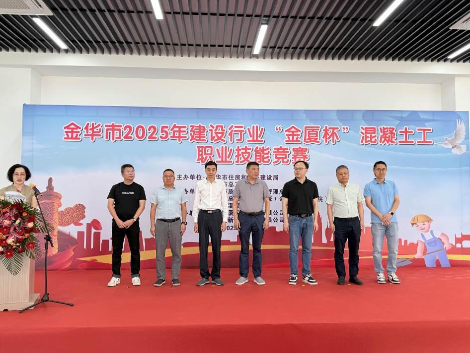 開幕式由金華市混凝土協(xié)會(huì)副會(huì)長(zhǎng)兼秘書長(zhǎng)周潔主持,金華市住房和城鄉(xiāng)建設(shè)局黨委委員、副局長(zhǎng)舒慧斌,金華市總工會(huì)黨組成員、副主席池獻(xiàn)洪等主管部門領(lǐng)導(dǎo),與金廈集團(tuán)總裁傅融共同出席。